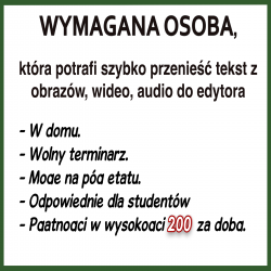 Potrzebna jest osoba, która wie jak szybko przenieść tekst z obrazów, wideo, audio do edytora tekstu.